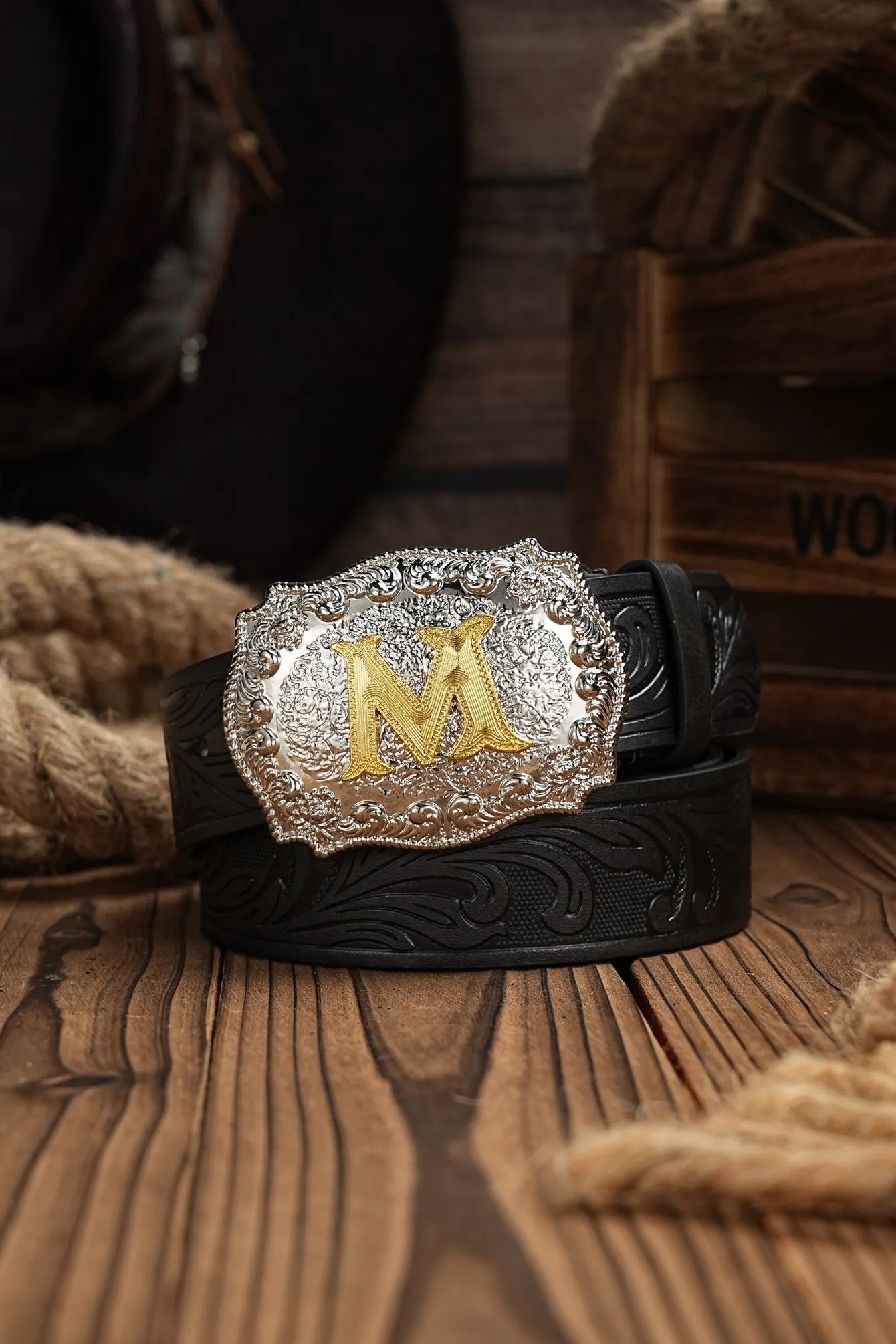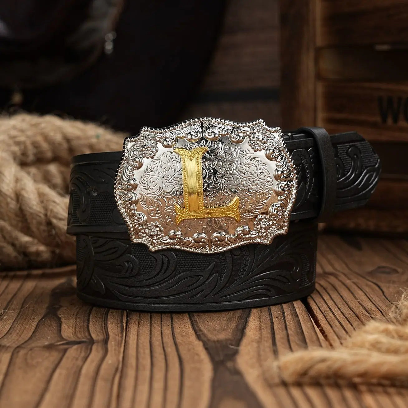 Western Cowboy PU Leather Belt - Men Waist Strap Bull Decoration Floral Engraved for Jeans